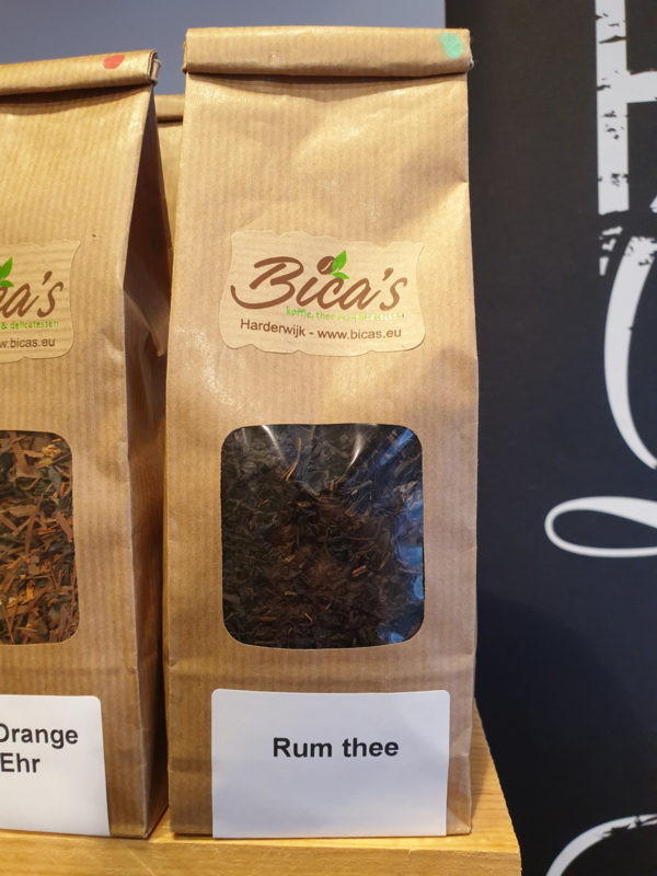 Ingrediënten: zwarte thee, rozijnen, rum-aroma