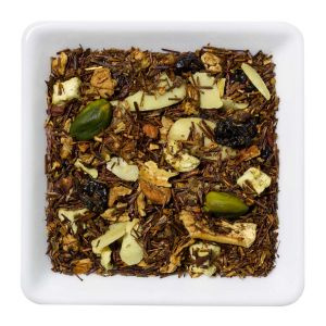Honeybush is geen familie van de Rooibos, maar komt wel uit Zuid-Afrika en lijkt qua uiterlijk wel wat op de Rooibos. De smaak is lichtzoetig, haast honing-achtig.